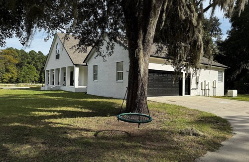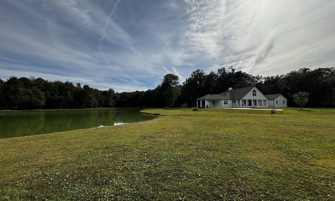 Welcome to our tranquil retreat nestled on a pristine 125-acre property. Immerse yourself in nature as you explore the scenic trails and relax by the sparkling lake. The spacious house boasts a cozy fireplace, perfect for chilly evenings. Unwind on the patio with an outdoor fire pit, creating unforgettable memories under the stars. Indulge in the luxury of freshly remodeled bathrooms and a modern chef's kitchen, reverse osmosis water filtration. Ensuring a comfortable and stylish stay. Escape the ordinary and experience the serenity of this remarkable getaway. Located only 20min from airport JAX and 2 minutes from i95 exit. Within a mile drive from major grocery and restaurants yet uniquely settled in the middle of the woods to offer you that off grid feel. 30amp RV outlet is available on the premises. We open to host events.