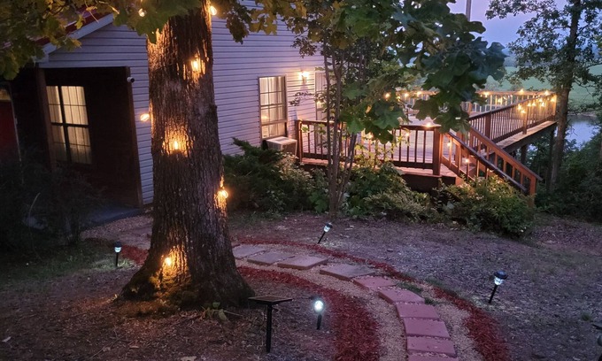 Escape to our Tennessee River cabin, a haven for 8 guests. Enjoy stunning views from the spacious patio, perfect for outdoor dining. Unwind in the backyard under enchanting string lights or cozy up on the front porch bench by the fire pit. Ideal for nature lovers, our retreat offers tranquility and occasional eagle sightings. Fish for catfish and bluegill or go hunting nearby. Whether you're seeking a peaceful weekend getaway, a family gathering, or an outdoor adventure, our cabin provides the perfect blend of comfort and natural beauty. Experience the serenity of country living with modern amenities. Book now for an unforgettable stay in Tennessee's picturesque landscape!