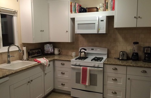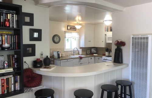 Indulge in the modern luxuries of our recently remodeled bathroom and kitchen, where elegance meets functionality. Gleaming hardwood floors throughout add a touch of warmth and sophistication to your stay.