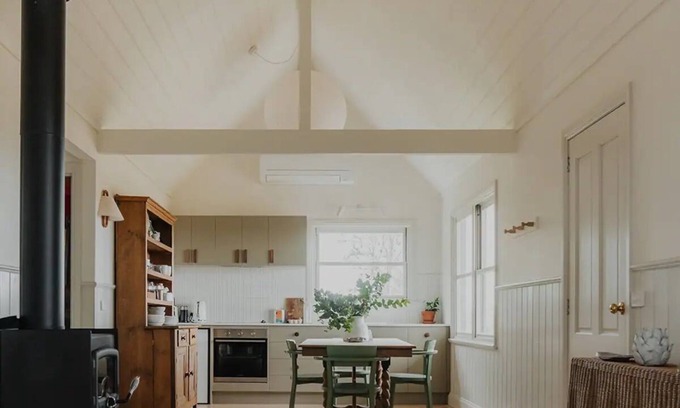 Open the front door of the cottage to enter into the main living and dining room. With the functional brand new kitchen at one end and a cozy couch and seating the other end. A gorgeous Nectre potbelly fire divides the room and heats the space up beautifully on the cooler days and nights in Winter.