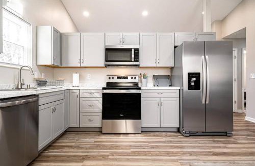 A recently renovated vacation home, Essential Escape offers accommodations in Radcliff. This vacation home provides free private parking and free Wifi. Elizabethtown City Park is 10 miles from the vacation home. The air-conditioned vacation home is composed of 5 separate bedrooms, 2 living rooms, a fully equipped kitchen with a dishwasher and oven, and 3 bathrooms. Towels and bed linen are featured in the vacation home. The accommodation is non-smoking. Louisville International Airport is 39 miles away.