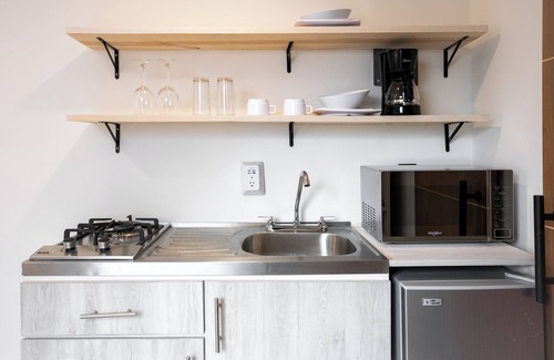EssentialPXM Arkitainer ResidentialLofts offers 12 accommodations. Kitchenettes offer stovetops, microwaves, and cookware/dishes/utensils.
