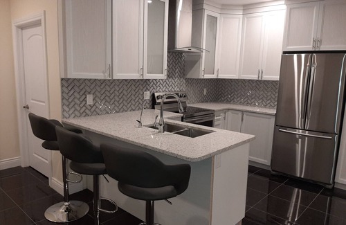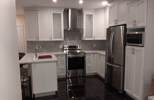 This is a luxury home with furnished guest apartment in a half basement walls (large windows above ground). A separate and private entrance. 1000 sqf with 1 large bedroom with 2 windows, large living room with home theater system and 60" TV , washroom, laundry room, and beautiful modern kitchen. Located close to 416 and 417 highways, 23 min to downtown Ottawa, 13 min Kanata Park&Ride, 12 min Fallowfield train s, 29 min airport, enjoy living in nature in the heart of the city