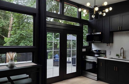 Relax, recharge, and indulge in this stylish luxury cabin nestled in the forest, your perfect nature escape. Surrounded by trees and offering total privacy, the interior features warm, bright spaces with large windows that connect you to the natural surroundings. Outside, a wraparound deck invites you to enjoy your morning coffee or a glass of wine while relaxing in the hot tub, detoxing in the sauna, or sharing stories around the firepit under a star-filled sky.