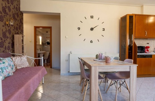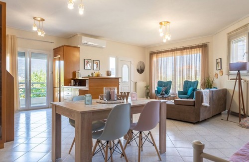 The property is a spacious, fully equipped residence. Direct access to beach bars, taverns and shops. An ideal choice for those who wish to enjoy beautiful moments in the city of Volos as well as in the entire region of Pelion.We will be very happy to host you!