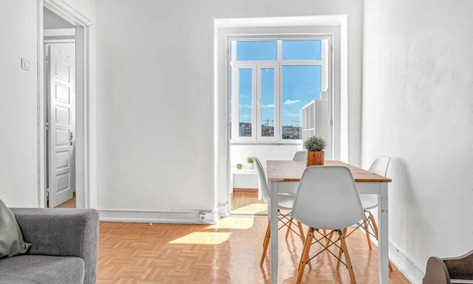 Wake up to sweeping views of Lisbon in this sun-drenched Estrela apartment. Bright and rustic, it features a cozy living room, a fully equipped kitchen, and a traditional Portuguese stone bathtub. Nestled on the top floor of a quiet building, you’ll be steps from cafés, parks, and Tram 28. Please note: access is via steep stairs, no elevator. Ideal for couples seeking authentic charm and walkable city vibes.