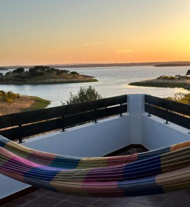 A recently renovated villa, Estrela Villas offers accommodations in Estrela. This villa features air-conditioned accommodations with a balcony and free Wifi. Featuring a terrace and lake views, the spacious villa includes 3 bedrooms, 2 living rooms, satellite flat-screen TV, an equipped kitchenette, and 2 bathrooms with a walk-in shower and a bidet. Towels and bed linen are available in the villa. The property has an outdoor dining area. Alqueva Dam is 18 miles from the villa, while Monsaraz Castle is 24 miles from the property.