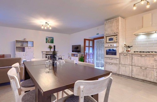 Single-family house "Eugenia", 2 storeys, renovated in 2024. In the centre of Jadreški 7.5 km from the centre of Pula, in a sunny position, 7 km from the sea, 7 km from the beach. Private: property 1'000 m2 with lawn and wildlife garden, swimming pool angular (8 x 4 m, depth 150 cm, seasonal availability: 01.May. - 15.Oct.) with internal staircase. Outdoor shower, terrace (40 m2), garden furniture, barbecue. In the house: internet access, washing machine. Parking (for 3 cars) at the house on the premises. Shop 150 m, grocery 3.2 km, supermarket 5 km, bus stop 290 m, sandy beach 7 km pebble beach 7 km. Walking paths from the house, cycle lane 100 m. Nearby attractions: National Park Brijuni 14 km, Nature park Kamenjak 17 km, Amphitheater 8 km. Please note: suitable for families. The owner does not accept any youth groups. Part of the house is closed and unoccupied. Airfield 7 km from the property.