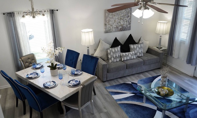 Best-rates for the Euphoric 3-Bedroom Townhome Wi-Fi starts from $194 per night with includes Air Conditioner, Security/Safety, Fireplace/Heating, Internet, Kitchen, Laundry, Parking, TV, Child Friendly with all other amenities. Perfect for Weddings is committed to ensuring every guest experiences a comfortable and extraordinary stay, whether planning a romantic getaway, a honeymoon, a pet-friendly stay, or celebrating with the entire wedding party.