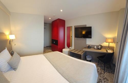 The Europe Hotel is located at the edge of the Northern Alsace Forest, a 20-minute walk from the center of Haguenau. Guests aged 16 years and older can enjoy the pool and spa. Free WiFi and free parking are available. Hotel Europe’s guest rooms are equipped with air conditioning and satellite TV. Some rooms have a balcony. A continental breakfast is served every morning. The hotel’s restaurant serves a range of traditional cuisine. During warmer months guests can dine on the terrace and sample a range of dishes. Guests can relax in the hotel bar with an aperitif before choosing from the restaurant's à la carte French-style menu. Baden Airport and Strasbourg are both 12 mi away.
