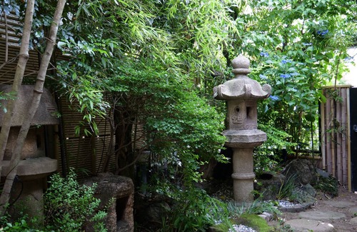 Two-storied wooden premises are made up of a western style master bedroom upstairs (twin single), a Japanese style “Tatami” room downstairs serving as either bed room (twin “Futon” single) or tea room, a living / dining room, a kitchennet, two bath rooms downstairs and upstairs, a balcony in front of the master bedroom upstairs, and a Japanese style private garden facing to the living / dining room downstairs.