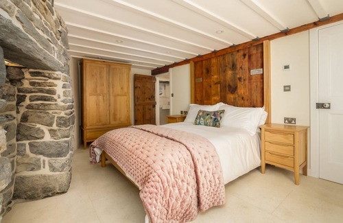 The headboard in the king bedroom and shower room doors are all made from the original attic floorboards, intertwining the cottage's history with the present day.