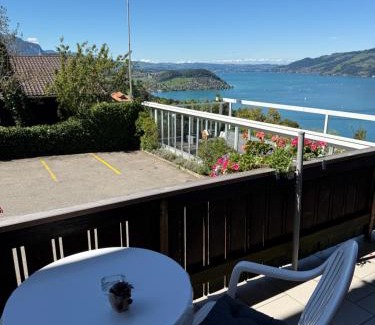 Eva's Seeblick offers accommodations in Krattigen, 18 miles from Grindelwald Terminal and 21 miles from Giessbachfälle. This property offers access to a terrace, free private parking, and free Wifi. Guests can enjoy lake views. At the apartment complex, each unit is fitted with a wardrobe, a TV, a private bathroom, bed linen, and towels. A balcony with an outdoor dining area and mountain views is offered in each unit. The rooms are equipped with heating facilities. Bärengraben is 28 miles from the apartment, while Münster Cathedral is 28 miles from the property.