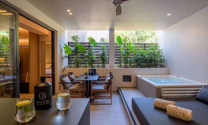 Best-rates for the Evanik Chic Hotel starts from $158 per night with includes Air Conditioner, Pool, Bedding/Linens, Parking, Balcony/Terrace, Accessibility, Fireplace/Heating, Child Friendly, Laundry, Designated Smoking Area, Wheelchair Accessible, Wellness Facilities, Bar, Internet, Kitchen, Guest Services with all other amenities. Perfect for Weddings is committed to ensuring every guest experiences a comfortable and extraordinary stay, whether planning a romantic getaway, a honeymoon, a pet-friendly stay, or celebrating with the entire wedding party.