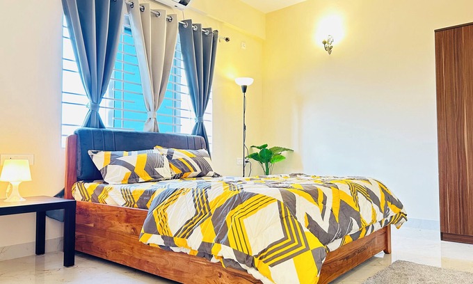 Welome to Evara Suites.! This luxurious apartment features modern amenities, including a well-appointed kitchen, comfortable living spaces, and high-speed Wi-Fi. Each bedroom offers plush bedding and ample storage, ensuring a restful stay. Perfect for families & business travelers seeking comfort and convenience,