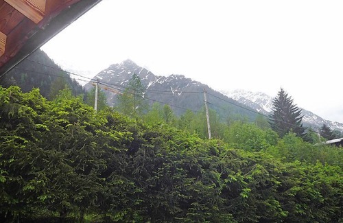 Chalet "Evasion", 3 storeys. In the district of Bossons 5.3 km from the centre of Chamonix, in a quiet position on a slope. Private: garden 800 m2. Steep motor access to 140 m from the house. In Winter: please take snow chains. Public parking on the road. Supermarket 5 km, restaurant 4 km, bus stop 1.7 km, railway station "Les Bossons" 3 km. Golf course (18 hole) 11 km, tennis 8 km, sports centre 8 km, skisport facilities 4.4 km, ski school 5.1 km, cross country ski track 8 km, ice rink 8 km. Nearby attractions: Téléphérique de l'Aiguille du Midi 4.5 km, Train du Montenvers Mer de Glace 5.5 km. Please note: car recommended.