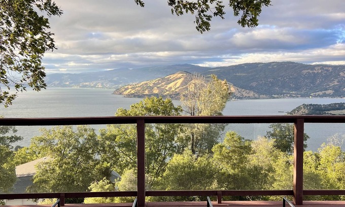 Peaceful Lakeview Escape in Kelseyville. Relax in our hillside home with 180° Clear Lake views—sunrise to sunset. Two spacious decks and a cozy sunroom invite lounging, yoga, or sunset dinners. Open-plan living, dreamy primary suite, guest rooms, bonus office/TV space, and global décor create comfort and charm. Nestled among oaks with daily deer visits. Just minutes to lake access, hiking trails, and top Lake County wineries.