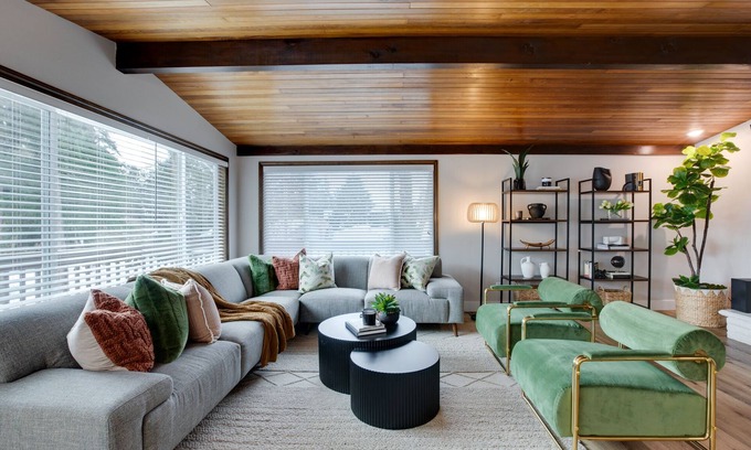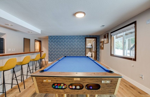 Bring the whole family to this spacious 6 bedroom home where a 70's vibe meets modern luxury. This remodeled home has beds for 14 people. 3,600 square feet of living space includes a fully-stocked kitchen, sauna, hot tub, and game room, it's sure to have something to cater to everyone! The Evergreen Retreat is your family's home away from home while visiting the Pacific Northwest.
