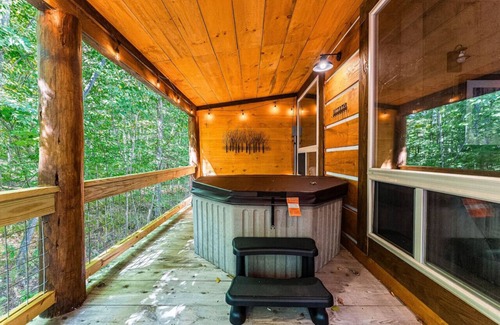 - Wooded Retreat w Hot Tub, Loft, Game Room & Sauna