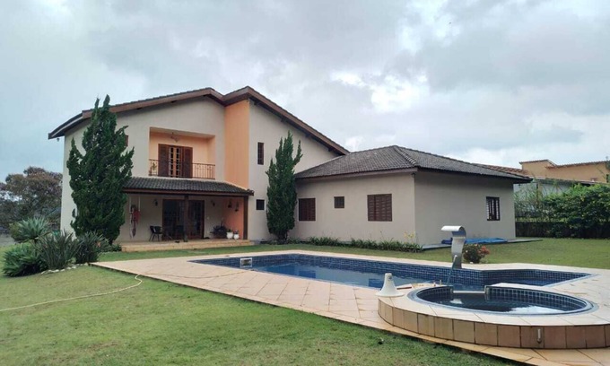 Located 1 hour from SP, with a beautiful view, in a cul-de-sac, ideal for walking and enjoying a bike. It is lawn, with orchard of lemon, orange, tangerine, blackberry, cherry, acerola, fig, avocado, seriguela, mango, persimmon, banana and cane, has a balcony with capacity for two hammocks, gardens, swimming pool with jacuzzi and waterfall. It is in an excellent neighborhood (Água Preta), with clean air, pleasant climate and direct contact with nature.