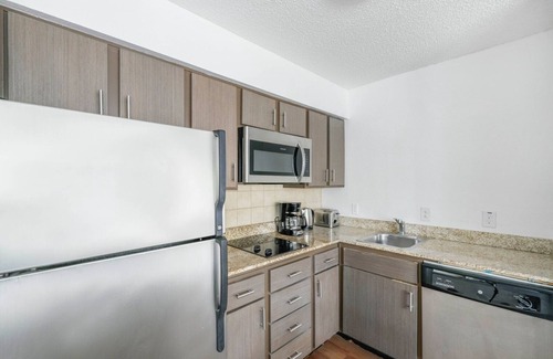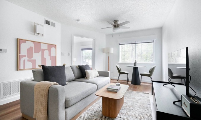 This furnished apartment is located in Arboretum, a fast-growing neighborhood north of downtown Austin. Centered around the massive outdoor shopping center of the same name, this area is known for fantastic shopping. The open-air Arboretum mall is an ideal place to shop for just about everything, since it is home to a Target, Trader Joe's, Costco, and more. There are also high-end fashion brands represented and a food court and cinema. The neighborhood is home to several hotels, and the family friendly Museum of Ice Cream is nearby.