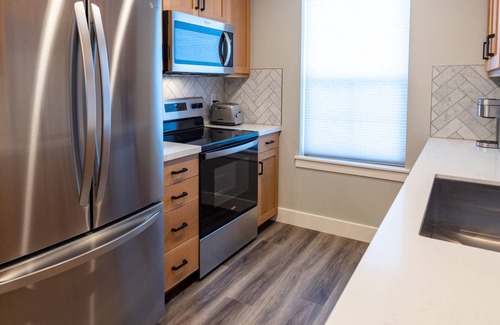 This second-floor apartment is brand new with beautiful finishes and a full kitchen. Much thought has gone into providing everything you will need for a relaxing and enjoyable stay. Everything is clean and new. Two bedrooms with comfortable queen beds will help you rest up for your next day's adventure. If you need a crib, the unit is stocked with a Graco Pack n' Play. The living room has a comfortable sectional with a TV setup with Roku for your entertainment, as does the main level bedroom. There is high-speed Wifi included for your technology needs. If you would like to cook your own meals, we have a fully set-up kitchen for you with oven, dishwasher, full-sized fridge/freezer and microwave as well as all the miscellaneous kitchen tools you will need. We have a Keurig coffee maker with an assortment of coffees and cocoa. If you prefer to eat out, there are many excellent restaurants nearby (Porcupine Pub and Grill is one of our favorites)!