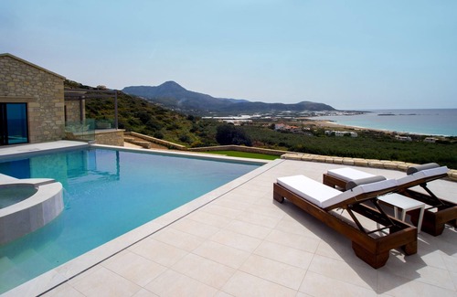 Exceptional 2BD villa Bespoke, heated pool, jacuzzi, sauna, sea & sunset view is located in Falassarna. Exceptional 2BD villa Bespoke, heated pool, jacuzzi, sauna, sea & sunset view provides accommodation, featuring Air Conditioner, Pool, Private Pool, among other amenities. This Villa features Air Conditioner, Pool, Private Pool, to make your stay a comfortable one.