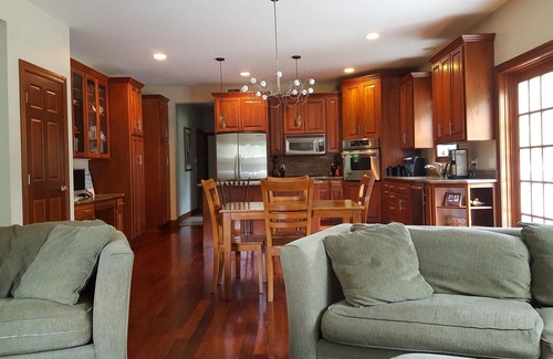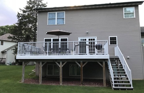 Large executive home, 4000+ square feet, on a quiet cul-de-sac. Exceptionally clean. Only 10 minutes to Minneapolis US Bank Stadium, Target field and convention center. Only 20 minutes from MSP Airport, Mall of America, Allianz Field, National Sports Center and TCP Golf course in Blaine. Game room with foosball table. Well equipped kitchen. Lovely front porch and large deck with gas and weber grills. Upon request, pack and play and highchair to accommodate families with young children.