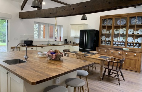 New to Vrbo: Lovingly restored in 2019, La Grange is an ode to ancient timber, ceramic tiles, exposed beams, and well-trodden wooden floors. This six-bedroom, five bathroom 18th century home oozes history and wraps you into its warm embrace. Although many of its original features have been retained within its cavernous, rustic interior, La Grange offers its guests all mod-cons – including a super-swish dining kitchen, eco-friendly wood fired hot tub and good wifi. If only walls could talk…………