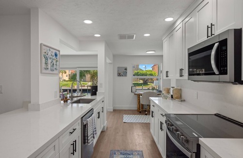 Escape to this stunningly designed vacation rental home, nestled along a tranquil canal and featuring a private boat lift for water enthusiasts. Just a short walk away, you'll find yourself on a pristine beach with exclusive deeded access, perfect for peaceful sunbathing or sunset strolls. This luxurious 4-bedroom retreat offers ample space for relaxation, with a private pool for cooling off and unwinding after a day of coastal adventures. Modern, elegant interiors blend comfort and style, making this the ideal getaway for families or groups seeking a blend of beachside serenity and waterfront living. The bedrooms are designed with thoughtful intention for epic relaxation with serene hues and a coastal flair. While enjoying this home, a fantastic galley style open kitchen concept is well designed for even the most discerning chef. This is a lovely home for a small group or entertaining guests.