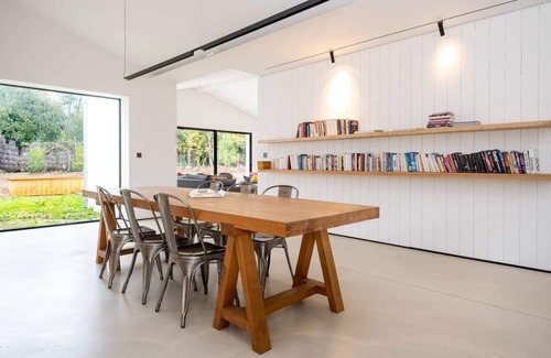 The house has 5 double bedrooms and 1 children's bedroom which can accommodate a total of 10 adults and 4 children, each bedroom having its own bathroom. The house is articulated in two communicating houses allowing an ideal cohabitation for several families. Bathed in light all day, its huge bay windows plunge you into a feeling of serenity inviting meditation.