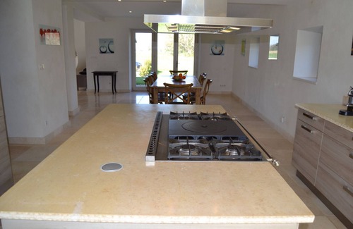 Walk in -access is given directly into a large open space distributing the lobby, lounge with fireplace, the dining area with a large table for 8 people, modern kitchen, equipped with a 2 ovens- stove in a beautiful center island, American fridge, espresso coffee machine and plenty of storage. In a second lounge room, two comfortable sofas facing a large wall-mounted flat screen.