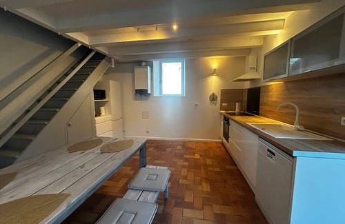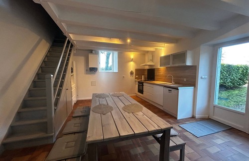 - On the ground floor: Fully equipped kitchen (oven, microwave, fridge/freezer, dishwasher, etc.), a warm living room with a 140*190 sofa bed, shower room and separate toilet