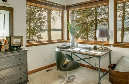 Explore the lake by kayak, canoe, stand up paddle board or power boat. 'Hit it' waterskiing, wakeboarding or fishing from the dock for small mouth bass and rainbow trout. Build sand castles on the beach or play volleyball or croquet on the large, grassy lawn. Soak your cares away and enjoy the views from the huge hot tub. Schweitzer Mountain is just 11 miles away for all winter snow sports or for hiking, sightseeing, mountain biking and berry picking in summer. A large variety of wildlife abound here. Ospreys, Bald Eagles, river otters, deer, moose, geese, swans, coots, loons and an abundance of fish all live here. Fall and spring bird migrations are fantastic!