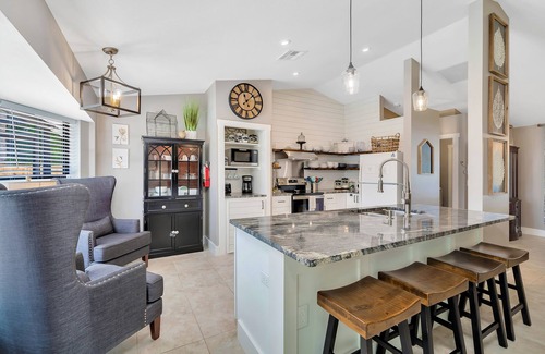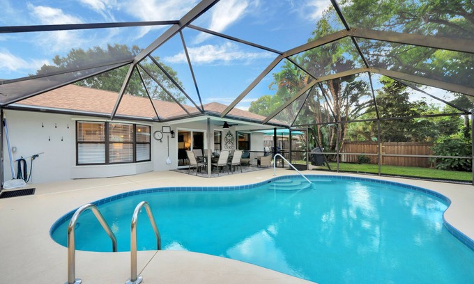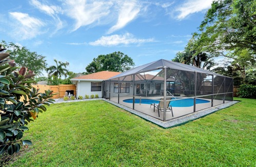 Welcome to your home away from home. This exceptional pool home with fantastic outdoor living is elegantly and tastefully decorated and stocked with many extra conveniences for your enjoyment. It is located in a quiet, residential neighborhood just minutes from downtown Vero Beach, FL, with quick access to the activities you came to enjoy. The beach is 5 Miles away. The restaurants district is 3 miles away. There are 3 public golf courses within 10 miles. Entry is via a keypad with a unique code personalized per individual guest stay.