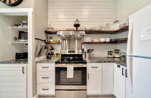The kitchen is equipped with a full-size stove/oven, microwave, dishwasher and ice making refrigerator as well as a wide ranges of pots/pans, baking dishes, spices and seasonings, cooking oils, and cooking sprays. Also included are many small appliances for your convivence while vacationing: traditional air fryer, Ninja Foodie, traditional toaster, ice crushing blender, hand mixer, electric tea kettle, electric griddle, waffle maker, microwave popcorn maker, crock pot, traditional coffee machine, as well as a single serve Kruerig KCup machine.