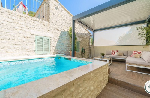Let yourself be seduced by this exceptional villa «2 steps» from the sea. It will enchant you with high-end services that will make your holiday a unique experience: cinema room, heated and secured plunge pool, wellness area, games room, boules court.