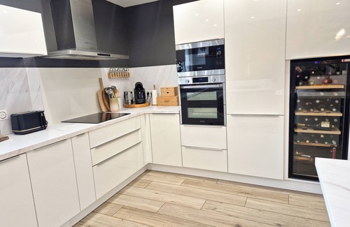 Relax by the outdoor pool or sip a drink in the hot tub of this 1615-sq-ft vacation home, which also features a garden and outdoor furniture. As for the great indoors, you can try your hand at table tennis, or enjoy the free WiFi and TV.