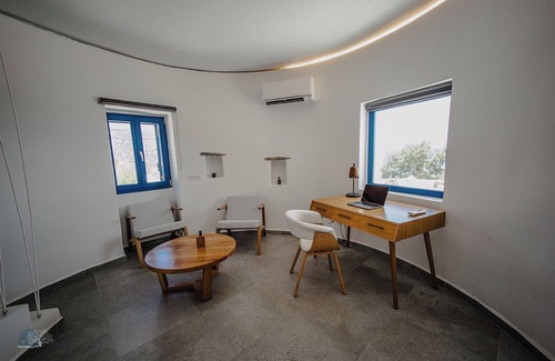 This stunning villa, built around two fully restored authentic windmills, offers a unique and luxurious retreat in the heart of Kea. Completely renovated in 2021 in a Cycladic and Mediterranean style, the property combines natural high-end materials, state-of-the-art equipment, and thoughtful design to provide an exclusive and comfortable stay.