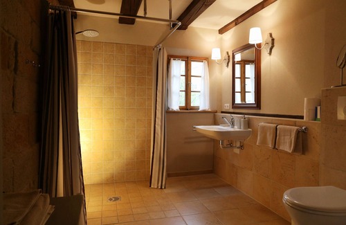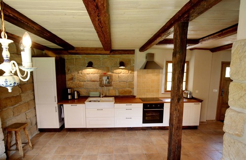 Five beautifully furnished double rooms can accommodate 10 people. An extra bed up to 12 people is available on request, baby and children's beds are available. 4 bathrooms, comfortable kitchen with sofa, dining room with an extra large table, generous roof and natural stone terraces, Wi-Fi, satellite TV, DVD, CD. Accessible ground floor (kitchen, dining room and 1 double room with bathroom)