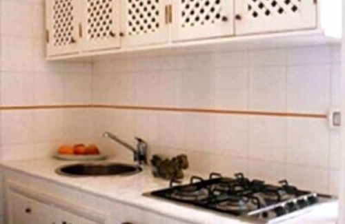 Small but beautiful is the newly designed white kitchen or Kitchenette with elegant brick kitchen buffet and custom-made cabinet doors, also in white. She has a wonderful view of the sea and the small bay. It is fully furnished and well equipped. About a couple of podium you reach the second bathroom beautiful. It is equipped with a large crystal shower stall (120 x 80); behind the white sliding door conceals a niche as a shelf for cosmetics. Very noble act, the fittings and the large mirrors in the form of a sun ... match the name of the object Casa Mare Sole.