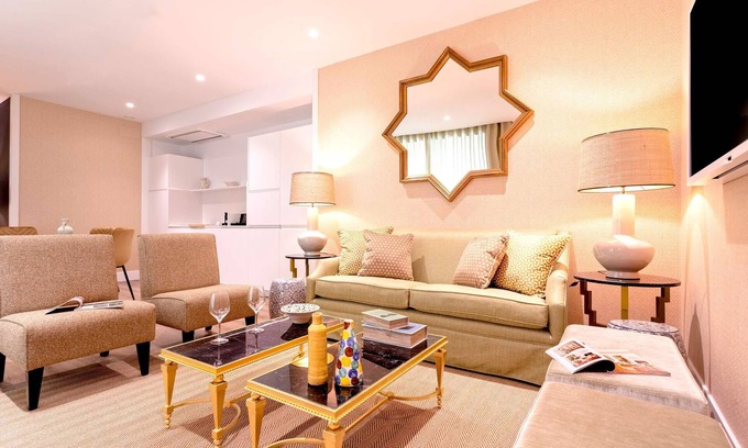 Our living room, adorned with exquisite luxury decor, features a wonderful sofa and two armchairs for relaxation and enjoyment of cutting-edge entertainment through an advanced Smart TV with internet access. Within the living room, you will find a distinguished area that combines a dining space designed to comfortably accommodate up to four guests, and an open-plan kitchen fully equipped with all the essential utensils you may need to ensure a comfortable and pleasant stay.