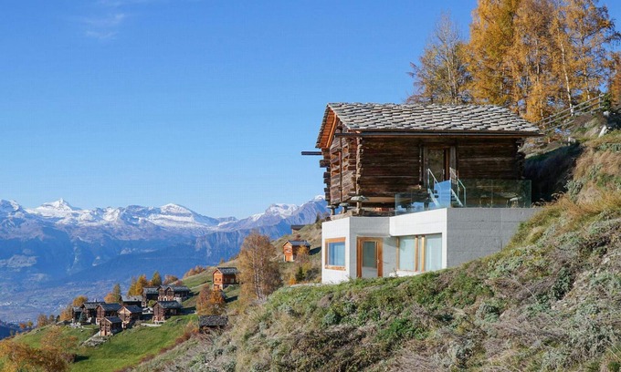 The CHALET-2-SPHERES pursues the claim of a decidedly exclusive holiday home in an unusually beautiful location. The name 'Chalet-2-Spheres' is derived from an upper floor dating from 1688, renovated in 2013, and a decidedly modern lower floor. These two very different spheres are strongly accentuated in the interior design. The upper floor also houses an unusual exhibition of 30 animal taxidermy specimens, some of which are of museum quality. The view from the chalet is of the four-thousand-metre Dent d'Hérens (4,171 m) to the south and of a mountain range around 2,500 to 3,700 m to the west.