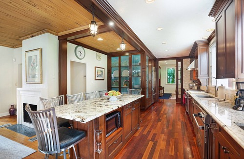 This stunning Addison Mizner home is in the historic luxurious neighborhood of Old Floresta in Boca Raton. This home is rich in history and professionally designed with beautiful new furnishings. It features 2 separate living rooms, a true chef's kitchen with high-end appliances, gas stove, a large wine cooler, a fireplace, a screened sun porch, and gorgeous wood floors. The home also highlights a private yard with lush landscaping, 3 outdoor garden dining areas, a BBQ, and a beautiful pool