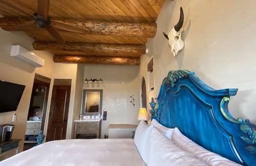 Pets are welcome in The Georgia O'Keeffe suite when you rent the entire Hacienda. Our other suites are pet-free for our guests with anaphylactic allergies.