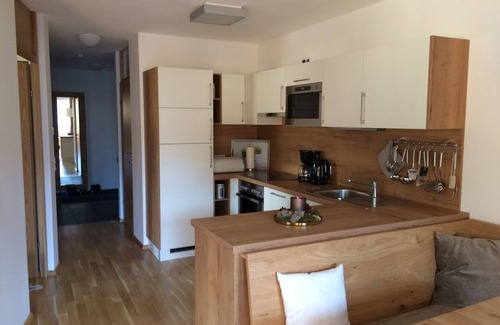 The apartment is located in the 2nd Floor and is directly accessible by elevator from the underground car park with their own reserved parking space. From the balcony you have a clear view directly into the Virgen and the foothills of the Venediger group. In summer, our guests have access to a heated outdoor pool (only for AlpinParks guests).
