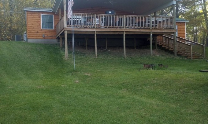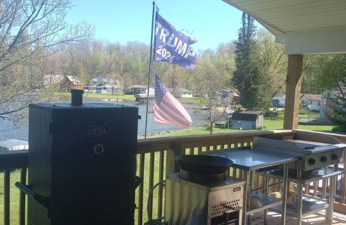 This property is for an exclusive club. This home features a 20'x30' covered porch with recessed lighting, outdoor kitchen that features a 36" natural gas fired griddle, 20" wok burner and 30" charcoal grill, 36" prep table and 36" propane fired smoker. It also has 6-person fire table, new 8-person hot tub and a custom built kegerator. The deck also features a 4-person round bar table and a mini-bar that seats 2. The property has easy access to the lake just a short walk downhill or rent the golf cart. Pontoon rental is also available. The home also features a full bar with pool table and Dream Cade V32. The arcade has all the vintage real arcade games we grew up with plus Sega and many other platforms. 2000 plus games to play. Every room in the home has at least a 30" tv with Wi-Fi, U-Tube, Netflix and Amazon Prime. The bathroom features a full sized tub with shower. The shower features a handheld wand and 12" rain shower head. The entire home has been renovated within the last 3 years. It has 3/4" solid oak floors throughout and ceramic tile. It also has a custom built fully functional kitchen with all the appliances you need to prepare any kind of meal. The bedrooms have new beds, and new pillows are furnished after every stay. There is a public beach straight across the lake it is accessible by pontoon rental or roadway. The house is nestled on a 417-acre lake with a lot of privacy.