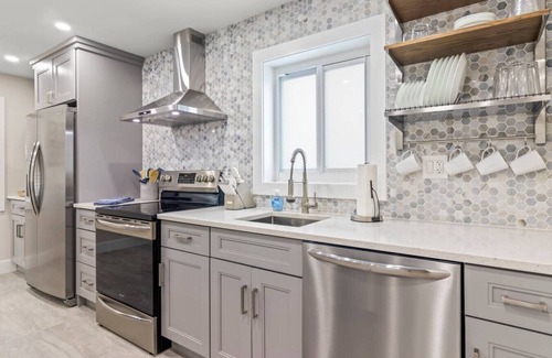 Furnished with all the essentials for preparing a delicious meal— including cooking utensils, pots, pans, dishware, and flatware. To enhance your cooking experience, you may also enjoy a coffee bar stocked with complimentary K-cups.