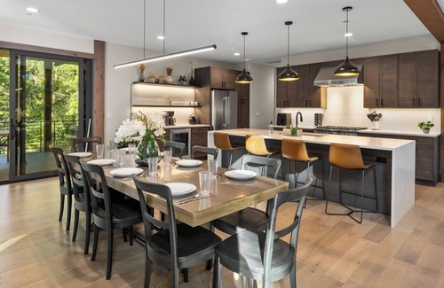 Fabulous and luxurious, this brand-new 5-bedroom, 5-bath retreat blends modern design with a forest cabin setting—complete with a year-round private heated pool. Located in the prestigious Nelson Ridge gated community of Suncadia, adjacent to Nelson Preserve and Nelson’s Farm, Whispering Woodland is perfectly situated for both seclusion and convenience, offering every amenity you could dream of for your next family or friends’ getaway.