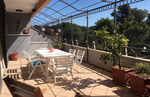 The apartment benefits from a large communal area used as a green area and a panoramic terrace overlooking the pine forest set up with benches.